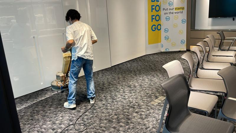 嘉美使用專業安全清潔地毯葯水配合洗刷 機先深層清洗後再進行護理及保養